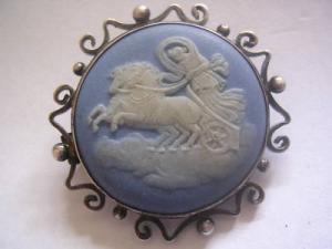 ANTIQUE BLUE WEDGWOOD CHARIOTS SILVER BEADED BROOCH     Completed    $70.84
