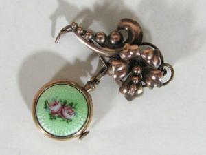 Antique Vintage PATHE Watch Brooch Lapel Pin Enamel     Completed    $70.88