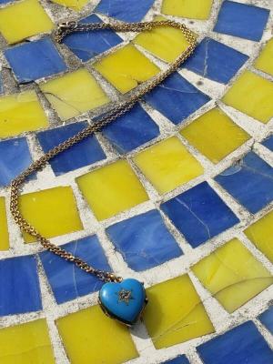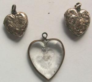 2 antique 9ct gold b&f heart lockets + glass heart     Completed    $70.33