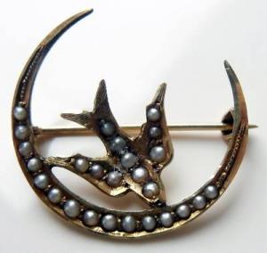 Antique 14ct GOLD SWEETHEART BIRD SEA PEARL BROOCH     Completed    $69.61