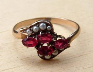 WOW Antique Victorian 10k Gold Ruby Seed Pearl Ring     Completed    $69.89
