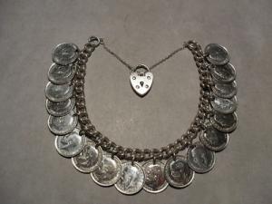 Heavy Solid Silver Antique Coin Bracelet-43.3g     Completed    $69.09