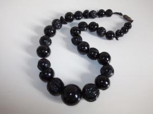 ANTIQUE black whitby JET bead necklace     Completed    $69.72