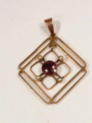 Antique 9ct gold garnet & Pearl pendant     Completed    $66.34
