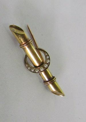 ANTIQUE 15 CT GOLD & PEARL BAR BROOCH     Completed    $66.25