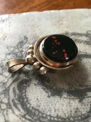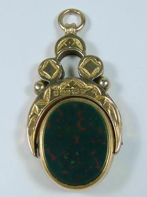 1885 ANTIQUE 9CT GOLD BLOOD AGATE DOUBLE SWIVEL FOB     Completed    $65.14