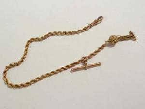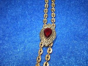 Antique GF Watch Chain RUBY STERLING SLIDE Necklace     Completed    $65.11
