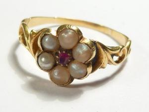 Antique pearl ruby & 9ct gold Ring     Completed    $65.5