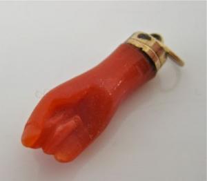 ANTIQUE 9CT GOLD CORAL HAND PENDANT     Completed    $65.54