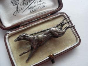 Antique silver greyhound whippet dog brooch     Completed    $65.39