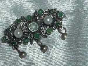 Antique Sterling Demantoid Pearls Pin w/ Tassels     Completed    $65.99