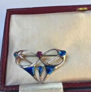 Vintage Arts & Crafts Beaten Silver & Ruskin Brooch     Completed    $65.56