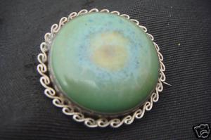 ANTIQUE RUSKIN TURQUOISE GLAZED BROOCH SILVER FRAME     Completed    $19.75