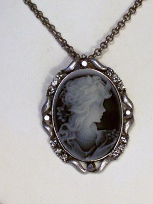 ANTIQUE INSPIRED CAMEO NECKLACE BLACK + CRYSTALS     Completed    $19.18