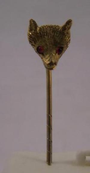 ***ANTIQUE GOLD METAL RUBY FOX HEAD PIN***     Completed    $19.29