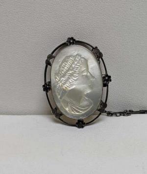 ANTIQUE ENGLISH VICTORIAN CARVED SHELL CAMEO PIN     Completed    $19.28