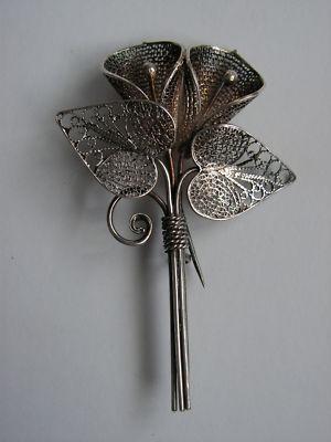 LARGE ANTIQUE OLD VICTORIAN ORNATE SILVER BROOCH     Completed    $18.32