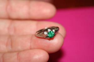 14K GP ANTIQUE EMERALD GREEN STONE PRONG RING     Completed    $18