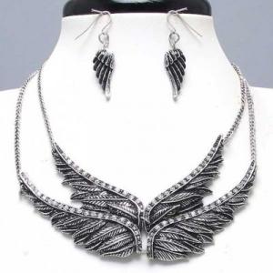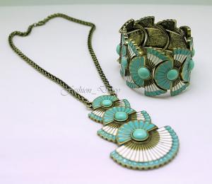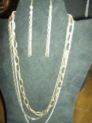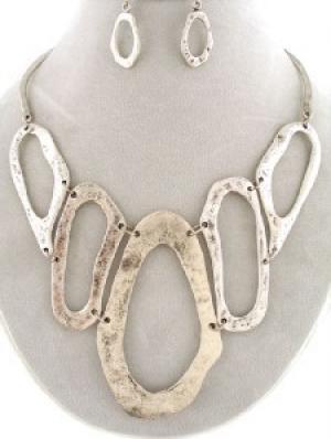 CHUNKY ANTIQUE SILVER TONE METAL ART NECKLACE SET     Completed    $17.99