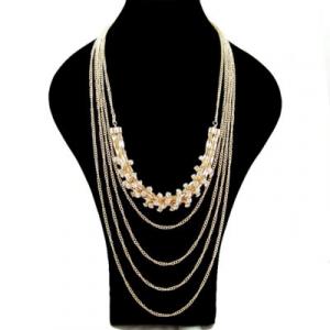 vtg antique jewellery multi chain bib long necklace     Completed    $17.99