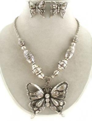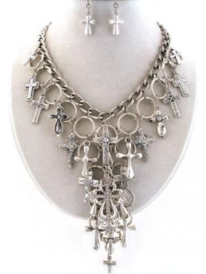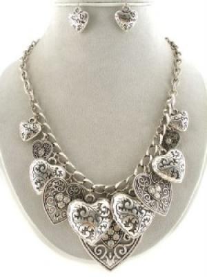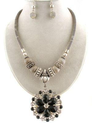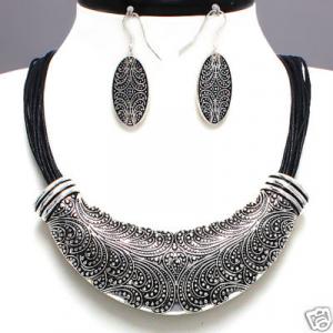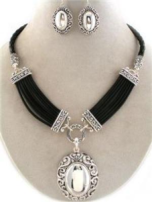 BLACK LAYERED CORD ANTIQUE SILVER DROP NECKLACE SET     Completed    $17.99