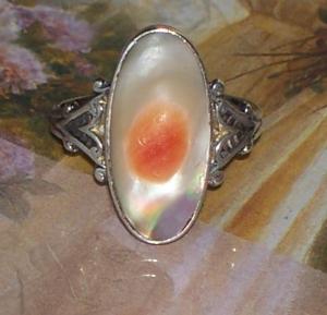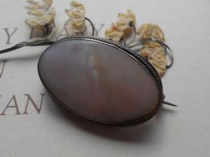 Beautiful antique silver Mother of pearl brooch     Completed    $17.96