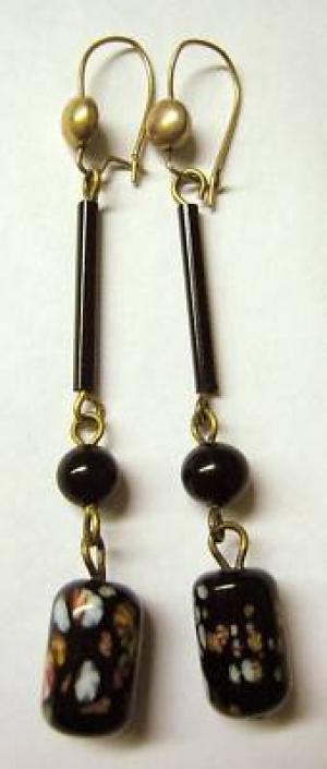 Antique Art Deco Czech Glass Lampwork Bead Earrings     Completed    $17.95