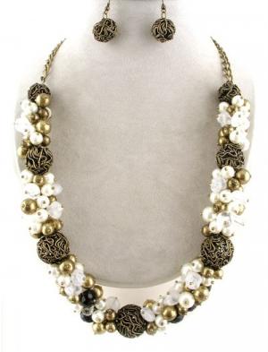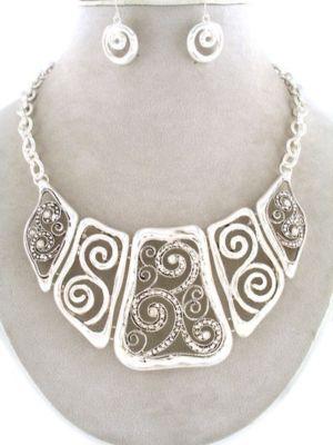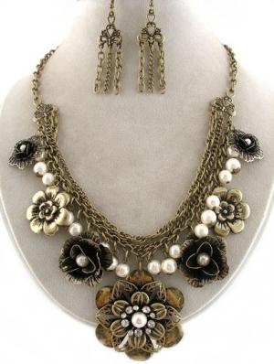 CHUNKY LAYERED ANTIQUE GOLD FLOWER BIB NECKLACE SET     Completed    $17.99