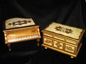 VINTAGE MUSIC~JEWELRY BOXES~ANTIQUE GOLD WOOD~PIANO     Completed    $17.83