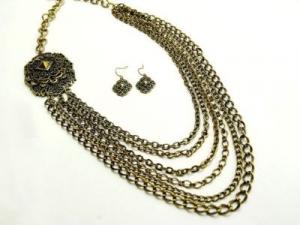 vtg antique jewellery multi chain bib long necklace     Completed    $17.99