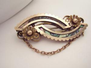 ANTIQUE VICTORIAN MOP ABALONE BROOCH PIN SIGNED     Completed    $17.94
