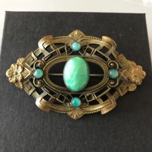 Lovely Antique Aqua Glass Victorian Brooch     Completed    $17.86