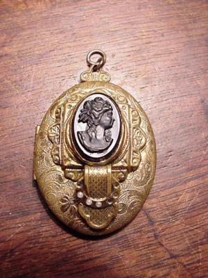 Antique Vintage Locket Gold Fill Black Cameo Pearls     Completed    $17.27
