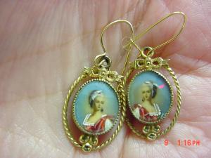 PAIR ANTIQUE HAND PAINTED PORTRAIT EARRINGS #217     Completed    $17.25