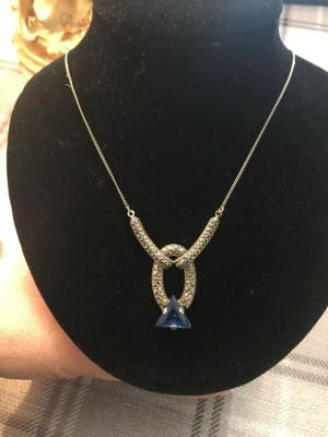 Antique Art Deco Silver 925 Blue Stone Necklace     Completed    $17.42