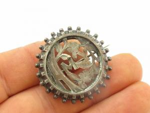 GOOD ANTIQUE SILVER INLAY/PIQUE BROOCH     Completed    $16.72