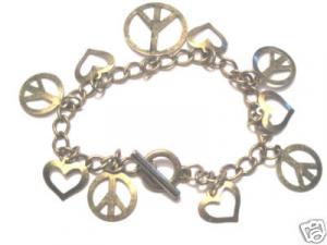 Antique Gold Peace Love Charm Bracelet chain link     Completed    $1.99