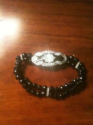 Antique bracelet, black beads, rhinestone accents     Completed    $1.99