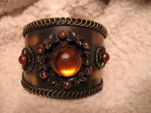 Antique Gold Tone Metal Cuff Amber Stone     Completed    $1.99