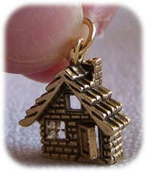 Antique Gold Camping Log Cabin Charm for Bracelet     Completed    $1.99