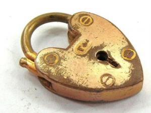 VINTAGE GOLD PLATE? HEART PADLOCK CLASP CHARM     Completed    $1.68