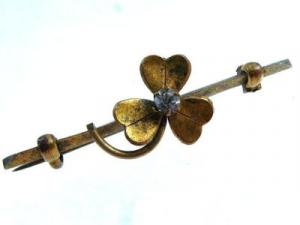 ANTIQUE CLOVER SHAMROCK WHITE STONE BAR BROOCH     Completed    $1.63
