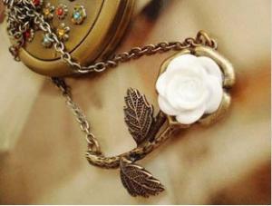 Antique Silver tone Snake chain flower necklace     Completed    $1.63
