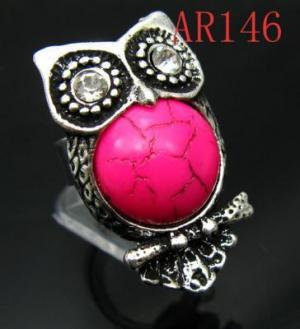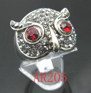 Owl Ring Rhinestone Rare Head Ring-Antique Silver     Completed    $1.29
