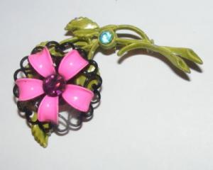 ANTIQUE BRASS TONE FLORAL PIN BROOCH C178     Completed    $1.29