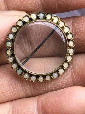 Antique Gilt Metal Round Faux Pearl Photo Brooch     Completed    $1.28