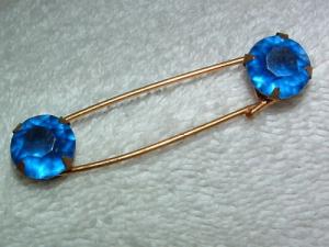 ANTIQUE VICTORIAN GILT PIN BROOCH W/ BLUE STONES     Completed    $1.25