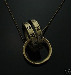 Antique Copper 3 Ring Necklace Roman numerals     Completed    $0.99