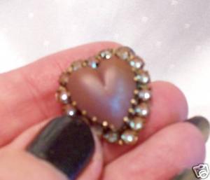 Antique Saphiret Glass Brooch / Pin Heart Shaped     Completed    $124.45