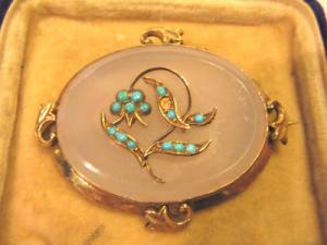 ANTIQUE VICTORIAN GOLD CHALCEDONY TURQUOISE BROOCH     Completed    $122.94